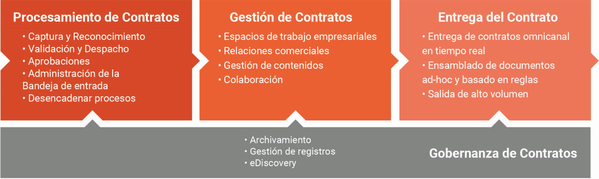 Está diseñado para automatizar completamente el ciclo de vida completo del procesamiento de contratos, asegurando que los contratos solo usen un lenguaje preaprobado, cumplan con los requisitos regulatorios y de gobierno de la información, y que las métricas clave se puedan rastrear a través de un panel de informes integrado.